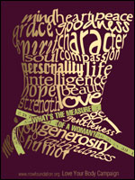 For our third project, we are to design a poster for a public service awareness. The poster is supposed to include a variety of media such as scanned images from books/magazines, original photographs, typography, hand-drawn images, etc. I am considering using body image as my subject. Below are a few posters I found based on this topic:
